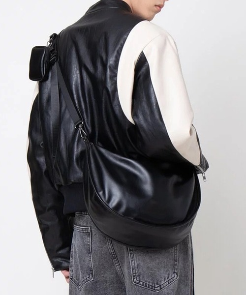 ◆WESTBOY COLLECTION◆艶を抑えたレザーライク素材が、クールで無機質な存在感を放つワンショルダーバッグ。柔らかなカーブシルエットが身体に馴染み、モードな印象をさりげなく引き立てます。ストラップには取り外し可能なミニポーチをセット。イヤホンや小物をスマートに持ち運べる、機能面も兼ね備えたデザインです。アウターの上から斜め掛けするだけで、スタイルに重心が生まれ、モードコーデがより洗練された印象に。ユニセックスで使いやすく、普段のシティスタイルをアップデートしてくれるアイテムです。詳細補足開閉:止水ジップ内ポケット:ファスナーポケット×1外ポケット:ファスナーポケット×1A4収納:不可ショルダー紐:取りはずし、調節可※ポーチ取り外し可【WB ORIGINALS(ウエストボーイオリジナルズ)】オーバーサイジングを中心に、時代のニーズに合った新たなトレンドを展開。“STREET” “MODE” “SPORT”を取り入れ、独自の世界観で新たな価値観を提案するオリジナルブランド。■取扱注意事項■※サイズは、測定方法と測定者によって多少の誤差がありますのでご了承下さい。(平置き採寸)※生地の素材上、においが気になる場合がございます。 その際は風通しの良い所で陰干しして頂くと、ほとんど感じにくくなります。※湿気が少なく、日光等が直接当たらない通気のよい場所に保管してください。※水に濡れてしまった場合は、柔らかいきれいな布で素早く水気を取り、陰干ししてください。※ご購入の際は色・サイズを必ずお確かめの上、ご購入下さいませ。※お使いのモニターや端末により、質感・色合いが実際の商品と異なって見える場合がございます。※着用画像は撮影状況や光によって、多少異なる場合がございますので置き画像をご確認下さい。※デニムを使用した製品は、インディゴ染めをしています。汗や摩擦により移染しやすいので、白色、淡色の組み合わせや重ね着はお避け下さい。※レザー製品(合皮も含む)は、素材の特性上徐々に劣化し固くなったり表面がひび割れてくることがありますのでご了承ください。また、熱に弱いためアイロンやドライヤーはかけないでください。※無理な詰込みや、鋭利なものの詰込み、極端に重たいものは入れないでください。※中に入れたものが落ちることがありますので振り回さないでください。※金属を使用している商品に関して、金属アレルギーや肌に異常を感じた方は、商品のご使用をおやめいただき、専門医にご相談下さい。