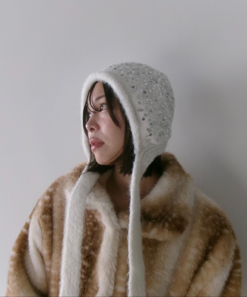 立体的な凹凸感のあるニットを全面に使用したボリュームハットで、顔まわりをふんわり包み込むシルエットが印象的なアイテム。 特徴的なロングストラップは、そのまま垂らして抜け感をプラスしたり、軽く結んでアクセントにしたりとアレンジの幅が広く、スタイリングに動きをつけてくれます。 存在感のあるデザインながら、普段のニットやカーディガンとも相性が良く、シンプルなコーディネートに合わせるだけで季節らしいムードがぐっと高まります。 程よい厚みのニットが顔まわりに柔らかな影をつくり、表情を優しく見せてくれるのも魅力。 デイリーのワンポイントから軽めのお出かけコーデまで幅広く活躍し、小物でトレンド感を取り入れたい方にぴったりのアイテムです。 【SANSëLF】 ▼お気に入り登録をおすすめします▼ ♡をクリック! お得なセール情報や、人気完売商品の再入荷情報 ラスト1点の通知など、耳寄りなお買い得情報をいち早く受ける事ができます。 ブランド【SANSëLF】のお気に入り登録もご一緒にお願い致します。 取扱注意事項 ※サイズは、測定方法と測定者によって多少の誤差がありますのでご了承下さい。(平置き採寸) ※生地の素材上、においが気になる場合がございます。 その際は風通しの良い所で陰干しして頂くと、ほとんど感じにくくなります。 ※湿気が少なく、日光等が直接当たらない通気のよい場所に保管してください。 ※水に濡れてしまった場合は、柔らかいきれいな布で素早く水気を取り、陰干ししてください。 ※ご購入の際は色・サイズを必ずお確かめの上、ご購入下さいませ。 ※お使いのモニターや端末により、質感・色合いが実際の商品と異なって見える場合がございます。 ※着用画像は撮影状況や光によって、多少異なる場合がございますので置き画像をご確認下さい。 ※デニムを使用した製品は、インディゴ染めをしています。汗や摩擦により移染しやすいので、白色、淡色の組み合わせや重ね着はお避け下さい。 ※レザー製品(合皮も含む)は、素材の特性上徐々に劣化し固くなったり表面がひび割れてくることがありますのでご了承ください。 また、熱に弱いためアイロンやドライヤーはかけないでください。 ※無理な詰込みや、鋭利なものの詰込み、極端に重たいものは入れないでください。 ※中に入れたものが落ちることがありますので振り回さないでください。 ※金属を使用している商品に関して、金属アレルギーや肌に異常を感じた方は、商品のご使用をおやめいただき、専門医にご相談下さい。
