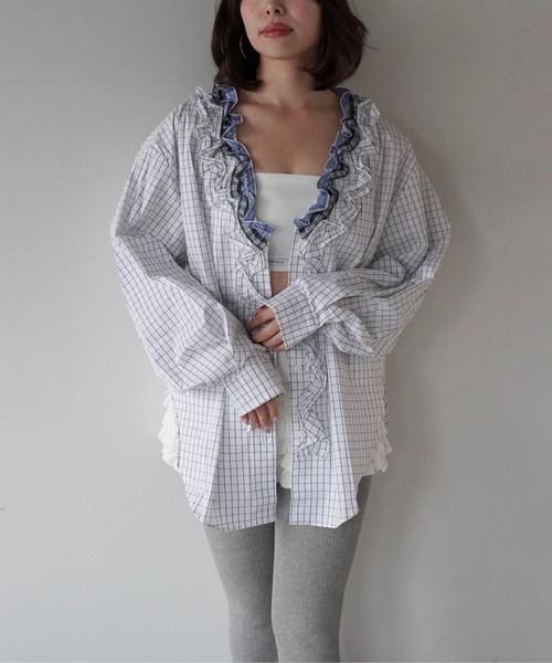 立体感のあるフロントフリルをあしらったチェック柄ブラウス。 細かな格子柄がすっきりとした印象を生み、甘さのあるフリルディテールとのバランスが絶妙な一枚。 前開きのボタン仕様で着脱しやすく、スタイリングに合わせて襟元の開き具合を調整できるのも嬉しいポイント。 ややゆったりとしたシルエットとボリュームスリーブが体のラインを拾わず、自然な落ち感のあるリラックスした着用感を叶えます。 厚さは程よく、季節の変わり目にも使いやすい仕上がり。 透け感や光沢がないため、オンオフ問わず取り入れやすいのも魅力。 デニムやスラックスに合わせるだけで主役になる存在感があり、スカートと合わせればより女性らしいムードに。 羽織りとしても活躍し、日常のコーディネートを品よく華やかにしてくれるブラウスです。 詳細補足 仕様:フロントフリル/前ボタンあり 伸縮性:なし 透け感:なし 光沢:なし 裏地:なし 厚さ:普通 サイズ感:ややゆったりめ モデル情報 model:162cm 【SANSëLF】 ▼お気に入り登録をおすすめします▼ ♡をクリック! お得なセール情報や、人気完売商品の再入荷情報 ラスト1点の通知など、耳寄りなお買い得情報をいち早く受ける事ができます。 ブランド【SANSëLF】のお気に入り登録もご一緒にお願い致します。 取扱注意事項 ※サイズは、測定方法と測定者によって多少の誤差がありますのでご了承下さいませ。 また体型によって、サイズ感に個人差がございます。(平置き採寸)※商品によってはシワがつきやすく、 畳みジワや折りジワなどが強く出る場合がございます。 その際は加湿した風呂場に数時間干すか、スチームアイロンでのお手入れをお勧めしております。 ※生地の素材上、においが気になる場合がございます。その際は陰干しして頂くと、ほとんど感じにくくなります。 ※レース等の繊細な素材を使用している場合には、お取り扱いにご注意下さい。 ※デニムを使用した製品は、インディゴ染めをしています。汗や摩擦により移染しやすいので、 白色、淡色の組み合わせや重ね着はお避け下さい。 ※ニット素材を使用した製品は、重みで伸びやすくなりますのでハンガーでの保管はお控えください。 ※お洗濯の際には、品質表示の指示に従ってください。必要であれば専門店にご相談ください。 家庭でご洗濯できる商品に関しては、洗濯専用ネットをご使用の上、個別での洗濯をお勧めいたします。 お色物は、色移りする可能性がございます。 ※着用画像は撮影状況や光によって、多少異なる場合がございますので、置き画像をご確認下さい。 ※2023年7月1日より、環境に配慮した取り組みの一環として、紙のアテンションタグを廃止しております。
