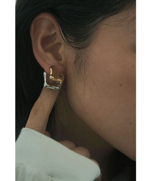 ゴールドとシルバーの2色使いが印象的なウェーブデザインのメタルピアス。不規則なうねりのあるフォルムが光の当たり方で表情を変える。ぷっくりとした立体感のある造形が耳元に程よいボリューム感を加えてくれます。シンプルなトップスやニットに合わせるだけで顔まわりに華やかさが生まれる。デイリー使いしやすいサイズ感ながら存在感のあるデザインでコーディネートのアクセントに。
