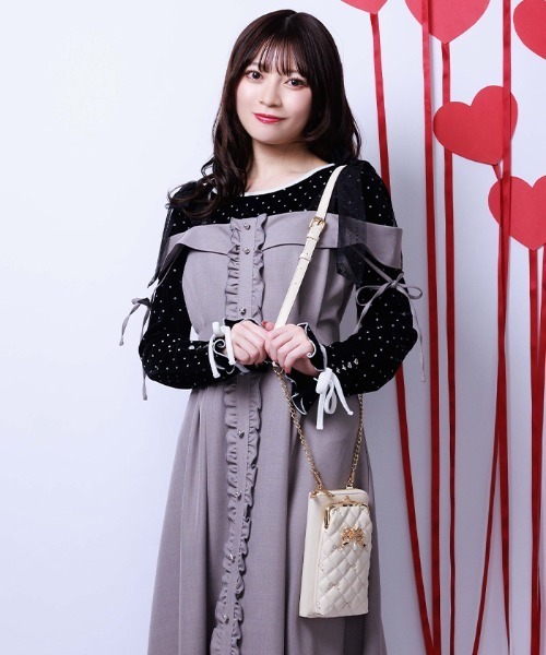 【アイテム説明】【商品紹介】リボン刺繍をほどこしたキルトデザインショルダーです。【デザイン】オリジナルのモチーフ金具をあしらった華やかなフロントデザインがポイントです。キルティングにリボン刺繍をほどこし、高級感が漂うフェミニンな印象に仕上げています。中は奥行きがあるがま口スペースと、カードポケットや仕切りが付いたお財布仕様。ちょっとしたお出かけに便利なアイテムです。付属のショルダーベルトは、長さのサイズ調節ができるのも嬉しいポイント。リボン刺繍キルトボストンとお揃いのデザインです。▽ axes femme * アクシーズファム【Concept】axes femmeのお洋服であなたのライフスタイルにほんの少しだけ彩る花が咲きますように。ブランドを通して、彩る花たちが、人と人、お客様や作り手たちの想いが世界中に繋がっていきますように。ベル・エポック(フランスの古き良き時代)にパリジェンヌたちが愛したファッションや文化にルーツをおき、独自のフェミニンスタイルを楽しむブランド**********************.。.: お気に入り登録のおすすめ :.。.∇気になるアイテムを登録∇ハートをクリックしてお気に入りに登録すると完売カラーの再入荷やラスト1点の通知、セールの通知を受けとることができます。∇ブランドを登録∇新商品や再入荷、セール通知など、いち早くブランドの情報を受けとることができます。是非ご利用頂き、お買い物をお楽しみ下さい。.。.: 商品について :.。.・サイト上のカラー名と、お届け商品に記載されているカラー名が異なる場合がございます。・商品の色味は、撮影場所や光のあたり具合、お客様のお使いのPCのモニター環境などにより色味が違って見える場合がございます。予めご了承の上ご注文下さい。.。.: 返品・キャンセルについて :.。.・着用、洗濯後の返品は致かねます。・商品到着後、着用前に商品を確認して頂きますようお願い致します。