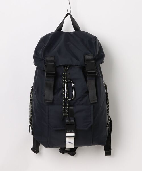 *耐久性のある素材. *A.P.C.ロゴ入り大きなプラスチックバックル2つで開閉. *A.P.C.ロゴ入りプラスチックバックルで開閉するフロントポケット1つ. *A.P.C.ロゴ刻印入り取り外し可能な黒いカラビナ. *登山用ロープ風ドローストリング.