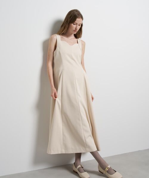 ◇デザイン カーブのネックラインとゆるやかにシェイプしたウエストで、洗練された上品な雰囲気を醸し出すワンピース。肩を上品に見せる控えめなアメリカンスリーブが、エレガントなだけではない一匙のモードを加えます。 ◇ファブリック 光り過ぎない落ち着いたマットなサテン素材。 適度な厚みとストレッチで、体のラインを拾いすぎることなく美しいシルエットをキープすることができます。 ----------------------------- 裏地:身頃あり 光沢感:ややあり 透け:ほぼなし 伸縮性:あまりない 生地の厚さ:薄手~普通 重さ:普通 ポケット:あり 洗濯:ドライ ------------------------------ ◇スタイリング ドレスアップしたい特別な日はもちろん、羽織や薄手のインナーを合わせてデイリーユースにも。シーンに合わせて表情の変化を楽しめる1着。 ◆商品画像はサンプルのため、デザイン、素材(混率等)、色味やサイズなどの仕様に変更がある場合がございますので予めご了承くださいませ。 model:H174 B78 W61 H88 着用サイズ: