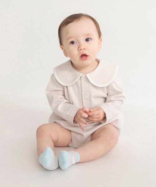 ■商品ポイント大きめの丸襟がポイントのカバーオールですスタイリングのインナーとしてはもちろん、一枚で着用してもコロンとしたシルエットがかわいいデザインです伸縮性のある柔らかなカットソー素材だからデイリー使いしやすいアイテム程よい厚さで、春~秋にかけて長く使えるのもポイント股スナップボタンが付いているのでお着替え、おむつ替えがしやすいのが特徴-----伸縮性:あり透け感:なし※モデル着用写真についてはイメージの為、実際の 商品とカラー や仕様が異なる場合がございますので、 商品画像をご覧ください。※商品の色味につきまして、お客様のお使いのPCの モニター環境により実際のカラーと画像の色味が 違って見える場合が御座います。 予めご了承の上、ご注文下さい。※店頭・外での撮影画像は光の加減で、 実際の商品より明るく見える場合が御座います。