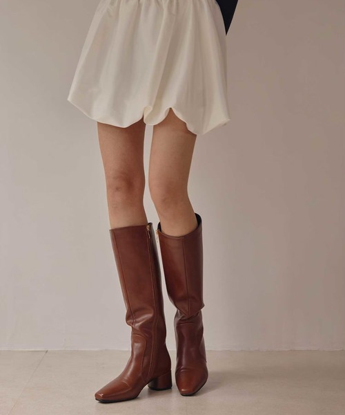 【COMMENT】■デザインACYM定番のロングブーツから低めヒールの新作が登場。定番betty skinny ロングブーツと比べ、筒幅に少しゆとりを持たせたデザインに。パンツのインスタイルが多い方や甲高、甲広など足のサイズが少し大きめの方にはこちらがおすすめ。ヒールも太めで安定感があり高すぎないので、より歩きやすさを重視する方にもぴったりのアイテムです。■サイズ感betty skinny ロングブーツに比べ、筒幅にゆとりがございます。よりフィット感のあるデザインがお好みの方はbetty skinny ロングブーツがおすすめです。■スタイリングミニ丈ワンピースやボトムとの相性はもちろん、スタンダードなデザインなのでパンツをブーツインしたスタイリングもおすすめです。============================季節感:オールシーズンサイズ感:適度伸縮性:なし光沢感:なし重厚感:適度============================ブーツ/ロングブーツ/ロング丈/ブラック/ブラウン/レザー/美脚/太ヒール/楽ちん/綺麗め/無地/上品/レディース