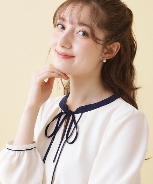 ▼▼気になるアイテムはハートマークをクリック▼▼ぜひお気に入り登録してチェックしてください♪細い配色パイピングを効かせたきれいめブラウスです~POINT~前でリボンを結び、フェミニンな雰囲気で着ていただけます。【素材】ぷるんとしたこしのある生地で、キレイ見えします。※照明の関係により、実際よりも色味が違って見える場合があります。また、パソコン・スマートフォンなどの環境により、若干製品と画像のカラーが異なる場合もございます。【スタッフコメント】shino(164 )華奢なリボンデザインがレディな雰囲気を高めてくれるブラウスです!さらっとして着心地も気持ちよいです。【26SS NEW ARRIVAL】【26SS NEW COLLECTION】モデル情報:身長163cm B81 W56 H82 着用サイズ:38(M)店舗へのお問い合わせ商品番号:508-85030●製品寸法:36(S):着丈54cm B99cm 袖丈57cm 肩幅35cm38(M):着丈56cm B102cm 袖丈58cm 肩幅36cm40(L):着丈58cm B105cm 袖丈59cm 肩幅37cm42(LL):着丈59cm B108cm 袖丈60cm 肩幅38cm備考: