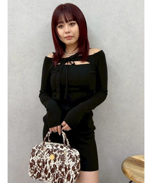 【印象的なカッティングがポイント!1枚で映えるニットワンピース!】■デザインデコルテ部分のカッティングデザインが印象的なニットミニワンピース。オフショルダーのような首元でリボン風にアレンジしたりお好きなように着ていただけます。伸縮性のあるニット素材でタイトデザインですが着心地が良く、スタイルアップ効果も◎■カラーベーシックカラーのブラック・グレーは万能にスタイリングできるのでON/OFFどちらでも着まわせる優秀さ◎ブルー・イエローは明るすぎない着やすいカラーにこだわり、スタイリングをパッと華やかにしてくれます。■スタイリング1枚で映えるデザインなのでクローゼットにあると便利なニットワンピース。柄もののBAGやシューズなどと合わせると上級者のスタイリングに◎首元が開いているデザインなので、上からアウターやジャケットを羽織ってもしっかり抜け感が作れておすすめです。