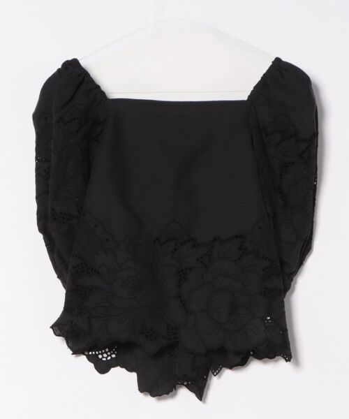 春夏にぴったりな爽やかな麻素材に、カットワークレースを施したブラウス。 ふんわりとした裾と袖にたっぷりあしらわれたボタンのカットワークレースのからほんのり肌が覗き、涼し気な印象。 バックで大きくリボンを結び、愛らしさとメリハリのあるシルエットを実現。