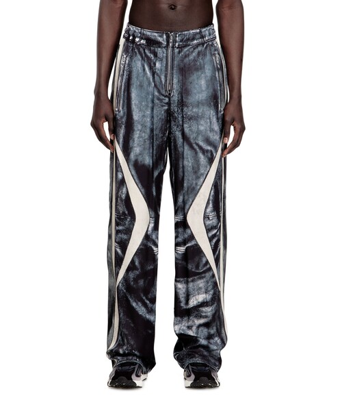 品番:A210390BMCZシグネチャーのひとつであるトロンプルイユデザインのパンツ「P-THECK-BMCZ」。光沢や落ち感が特徴のヴィスコース素材を使用することで、ラグジュアリーな一本に仕上がっています。ウエストバンドに伸縮性があり、ほどよくホールド感のある快適なはき心地に。ヒップの右側にオーバルDのロゴ入りです。