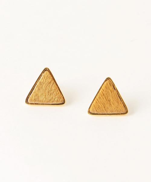 トライアングルイヤリング☆秋らしいあたたかみのある素材に、ゴールドカラーのトライアングルのモチーフで囲いをしたイヤリング。今年らしい深みのあるベージュと、コバルトブルーの2色展開です。※ラフなお作りになっておりますので、中央の素材に毛羽立ち等がある場合がございます。商品特性となりますので予めご了承ください。※着用、お取り扱いの際は商品についておりますアテンションタグ、洗濯ネームを必ずご確認ください。店舗にお問い合わせの際は、全国のAnother Edition店舗まで下記の品名/品番をお申し付け下さい。品名:AE トライアングル ER品番:56336993812