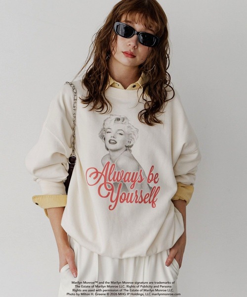 マリリン・モンローの生誕100周年フォトグラフコラボアイテムーーー★おすすめポイント★[1]マリリン.モンローのフォトグラフコラボアイテム[2]製品洗いで風合いを出した裏毛アイテム[3]異なるフォトグラファーによる3シーンを選定[3]抜け感のあるボートネックラインーーー[fabric]表を綿100%、裏をポリエステル綿の裏毛を使用。製品洗いをし風合いを出した素材感が特徴的。[design]マリリン.モンローのフォトグラフコラボアイテム。BIGシルエットのチュニック丈で、裾にかけて丸みをつけ、抜け感のあるボートネックの衿ぐりがポイント。袖口のリブを長めにしメリハリのあるディティールに。プリント手法は、フォトのグラフィックを採用。インクジェットにすることで、生地に馴染むヴィンテージ感を表現したアイテム。着るだけでアイキャッチとなるフォトを選定。「Bernard of Hollywood」「Milton,reene」「Sam Shaw」と3柄ともシーンごとにフォトグラファーが違うものをチョイス。[styling]ボトムスを選ばず、何とでも合わせられるプリントトップス。【マリリン・モンローの生誕100周年】2026年は元祖インフルエンサーとも言える、マリリン・モンローの生誕100年の年になります。女性の選択肢が限られていた時代に、自分らしさを貫き、自らの道を切り拓いたマリリン・モンローは、まさに“自分を信じること”の象徴。先駆的な精神、揺るぎない自信、そして比類なきスター性は、世代や国境を越えて、多くの人の背中を押し続け、その幅広い魅力と多彩な才能は今も世界中の人々を魅了し、影響を与え続けています。MARILYN MONROE(TM)ブランドは、そのマリリン・モンローの魅力を今の時代のライフスタイルにつなげていきます。※屋外での撮影画像は光の加減で実際の商品より明るく見えたり、風合いが異なって見える場合がございます。 商品の色味はスタジオ撮影の画像を参考にして下さい。-------------------------------------≪お買い物をよりお楽しみいただくために≫◆商品のお気に入り登録(ハートマークをクリック)完売カラーの再入荷通知や、完売間近の通知、セールの通知も受けることができます。◆ブランドのお気に入り登録新商品や再入荷など、いち早くブランドのお得な情報を受け取ることができます。-------------------------------------