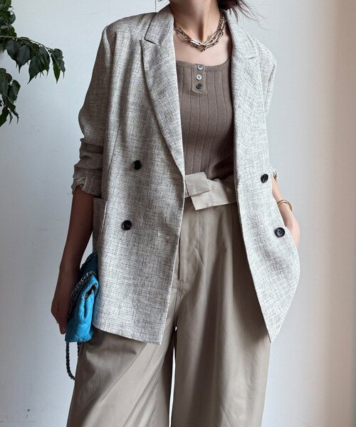■2025 AUTUMN & WINTER ITEM■透けるツイードで、きちんと感に抜けを。大人の余裕を感じさせる、シアーツイードダブルジャケット。程よくシアー感のある素材で軽さをプラスし、硬くなりすぎない印象に。さらっと羽織れる素材感で、季節の変わり目にもしっかりと活躍してくれます。ダブルボタンながらもすっきりと決まるシルエットは、スタイルアップ効果にも期待大。幅広いシルエットのボトムにも合わせやすく、オンオフ問わずに着回しができる1着ですよ!- POINT -・透け感のあるツイード素材で上品さと抜け感を両立・ダブル仕様でも重たく見えない軽やかな仕立て・オンオフ問わずに着回し可能--------------------------------洗濯:手洗い可能透け感: あり裏地: なし伸縮性: なし光沢感: なし--------------------------------【 ♡ をクリックでお得な情報をお知らせいたします 】〈 商品のお気に入り登録 〉 お気に入りアイテムのお値下げ・再入荷・在庫ラスト1点など通知を受けることができます。〈 ブランドのお気に入り登録 〉DOUDOUの新商品や再入荷、セール、クーポン配布などお得な情報を受けることができます。--------------------------------------※ 生産の都合上、お届け時期が前後する場合がございます。※ 掲載画像の商品の色味は、 撮影場所や光の当たり具合などにより色味が異なって見える場合がございます。 また、お客様のお使いのPC・スマートフォン等のモニター環境などにより色味が異なって見える場合がございます。予めご了承の上ご注文ください。 ※ 着用、お取り扱いの際は、商品についている品質表示とアテンションタグを必ずご確認下さい。