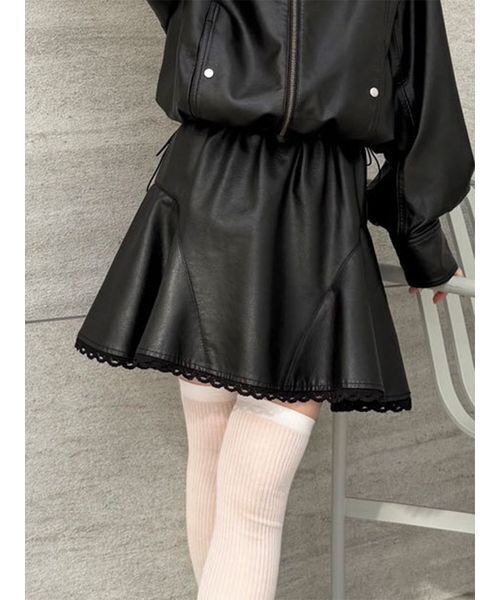 【ふんわり広がる軽やかフレアのミニスカート】【Design/Styling】ジップブルゾン(品番LWFJ261101)と同素材で仕立てたフレアミニスカート。サイドに切り替えを入れることで、ふんわりと広がるフレアシルエットを実現し、スタイリング全体を華やかに見せてくれます。裾には同色のレースをさり気なくあしらい、上品なアクセントをプラス。同素材のブルゾンとセットアップ風に着こなすのはもちろん、フェミニンなブラウスやカジュアルなカットソーとも相性が良く、幅広いコーディネートに活躍する一着です。【Fabric】フェイクレザーやデニムを組み合わせた表情豊かな素材を使用。ほどよいハリがフレアラインを美しく保ちながら、軽やかな着心地でデイリーに取り入れやすいアイテムです。透け感;なし裏地;あり伸縮性;なし光沢感;なし生地の厚さ;普通※照明の関係により、実際よりも色味が違って見える場合があります。またパソコン・スマートフォンなどの環境により、若干製品と画像のカラーが異なる場合もございます。予めご了承ください。商品の色味は、商品単品画像をご参照下さい。※商品画像はサンプルのため、色味やサイズ等の仕様に変更がある場合がございますので、予めご了承ください。