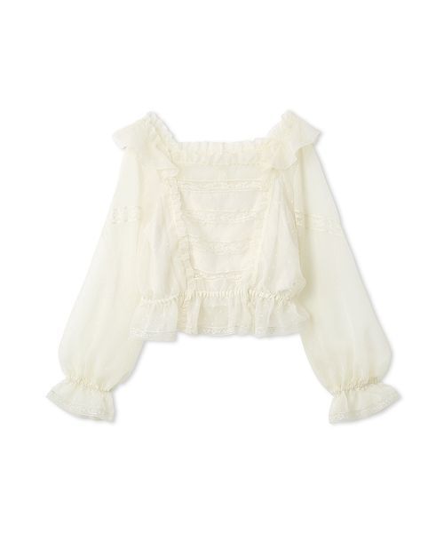 上品なカットドビーが入ったシフォン生地に繊細なレーステープを組み合わせて、フェミニンなヴィンテージのレースブラウスをイメージしてお作りしました。洗いをかけたデニムボトムやスラックスなど、メンズライクなものと組み合わせるとバランス良くコーディネートできておすすめです。インナーキャミも裾にゴムを入れており、ブラウスと合わせた時にもたつかないように工夫しております。 透け感;ややあり 裏地;なし 伸縮性;なし 光沢感;なし 生地の厚さ;薄手 ※照明の関係により、実際よりも色味が違って見える場合があります。 またパソコン・スマートフォンなどの環境により、若干製品と画像のカラーが異なる場合もございます。予めご了承ください。 商品の色味は、商品単品画像をご参照下さい。 ※商品画像はサンプルのため、色味やサイズ等の仕様に変更がある場合がございますので、予めご了承ください。