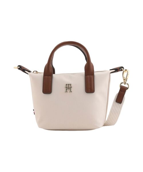 マイクロトート2WAYショルダーバッグ小さな財布やスマートフォンなど、外出時の必要なものがちょうど良く収まるマイクロサイズのトートバッグ。ショルダーストラップ付きの2WAY仕様です。メインファブリックは軽くて丈夫なナイロン素材を使用。ハンドルなどのディテールにレザーを使うことで、高級感をプラスしています。フロントに添えた、モノグラムロゴのメタルモチーフがアクセントです。・ポケットの数:3【サイズ】FREE:高さ14.0cm 最大幅21.0cm マチ8.5cm 持ち手22.5cm ショルダー最小89.0cm ショルダー最大132.0cm 重さ(g)300【TOMMY HILFIGER】永遠のアメリカンクラシックをベースにモダンなひねりを加えたデザインが人気のトミーヒルフィガー。都会的で洗練されたメンズ・ウィメンズに加え、チルドレン、ゴルフライン、そしてよりカジュアルなデニムラインと豊富なカテゴリーが揃うグローバルブランド。