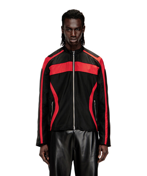 品番:A211310PDAI配色とパイピングディテールが印象的なレギュラーフィットのジップアップジャケット「J-ADAM-PDAI」。しっかりとした風合いのナイロンキャンバスファブリックで仕立てています。タイニーロゴを採用したジッパープルや左袖のオーバルDロゴなど、各所にディーゼルらしいエッセンスをプラス。着こなしを一気にクールかつスポーティな雰囲気に仕上げてくれる一着です。