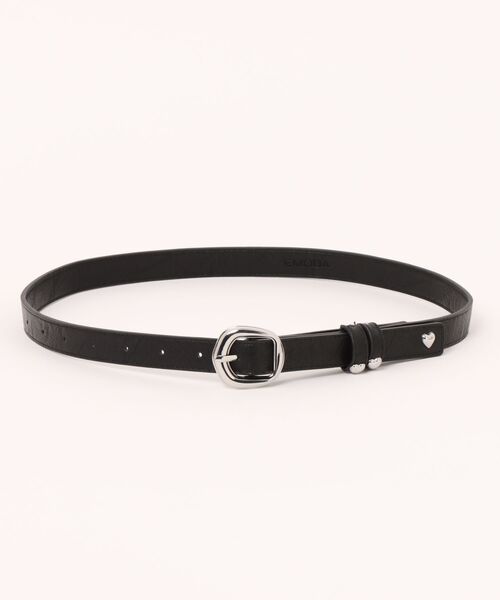ループと剣先にあしらったハートパーツがポイントにのベーシックベルト。バックルは少しニュアンスの入ったほかにない形にしています。カラーはBLK・BRNで使いやすい展開です。