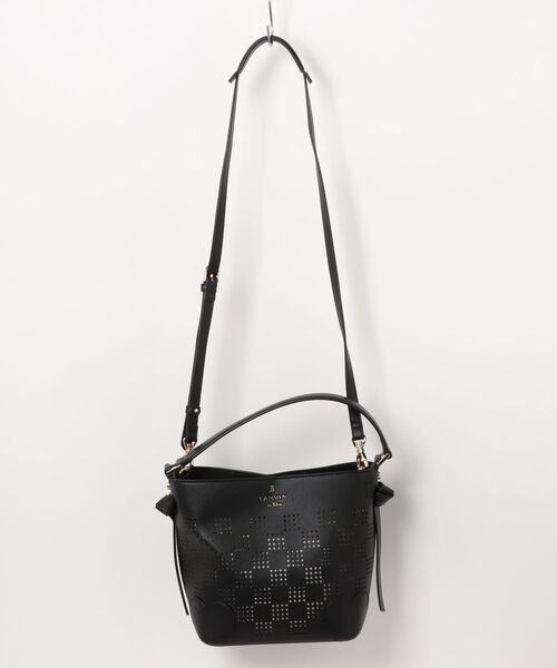 上品で洗練された佇まいが魅力のLANVIN en Bleu(ランバン オン ブルー)「ペルフォレ」シリーズのパンチングバッグは、<br> ベーシックなカラーリングをベースに、繊細なパンチング加工を施すことで、春夏シーズンに映える軽やかさと程よい抜け感を演出したデザインが特徴です。<br> パンチング柄は中身が見えにくい設計となっており、見た目の美しさだけでなく、日常使いしやすい実用性にも配慮。<br> さらに、パンチングの中にさりげなく忍ばせたブランドアイコン「JL」や、底のコーナー部分をハート型に仕上げたディテールなど、LANVIN en Bleuらしいフェミニンで遊び心のあるデザインが光ります。<br> シンプルながらも印象に残る表情で、コーディネートのさりげないアクセントに。<br> ショルダーストラップ付きで手持ち・肩掛けなど持ち方のアレンジができ、デイリー使いからお出かけ、きれいめカジュアルまで幅広いスタイリングに対応します。<br> 春夏の装いを品よく格上げしてくれる、デザイン性と実用性を兼ね備えたパンチングバッグです。