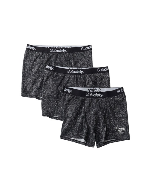 【Subciety(サブサエティ)】 生地、バリエーション、フィット感のすべてをアップデートした定番人気アイテムの3枚入りボクサーパンツ -デザイン- コットン/ポリウレタンできめ細かく編み上げ、優れたストレッチ性と柔らかな肌触りをもつ専用生地を開発し採用。 こだわり抜かれた快適な履き心地を実現しました。 ウエストゴムは耐久性を向上し、繰り返しの着用でもヨレの少ない仕様。 本体に縫製するネームタグ類を一掃し内側に直接プリントすることで、よりストレスフリーな着用感に。 A/Bの左裾にはメインロゴ『THE BASE』を、Cの左裾には人気グラフィック『スカルマリア』をプリントで施しました。 ロゴプリントを施したケースはトラベルポーチとしても使用可能です。 プレゼントにも最適なアイテム。 A: 本体BLACK無地 / ゴム部分ロゴ『THE BASE』 3枚パック B: 本体ペイズリー柄 / ゴム部分ロゴ『THE BASE』 3枚パック C: 本体BLACK無地 / ゴム部分ロゴオールドイングリッシュ 3枚パック -生地- 伸縮性に優れ、柔らかな肌触りのコットン/ポリウレタン混紡生地を開発し採用。 ▼商品のお気に入り登録 完売カラーの再入荷通知や、ラスト1点の通知、セールの通知も受け取ることができます。 ▼ブランドのお気に入り登録 新商品や再入荷等、いち早くブランドのお得な情報を受け取ることができます。
