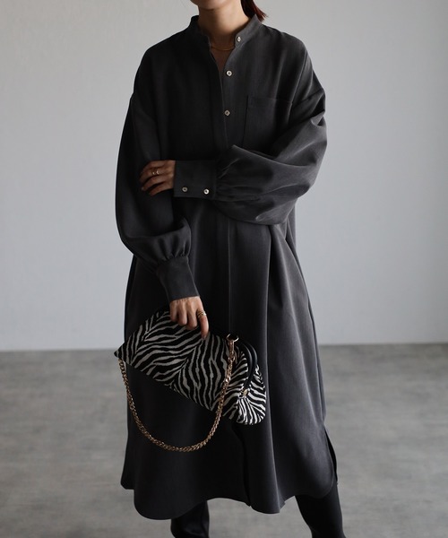 アレンジコーデが楽しめるきれいめシャツワンピース ふんわりとしたボリュームスリーブが魅力の、胸ポケット付きロングシャツワンピース。 裾はラウンドシルエットで、ロングブーツと合わせて履ける絶妙な丈感にこだわりました。 やや伸縮性のあるツイル素材で、シワが目立ちにくく、透けにくい生地感。 羽織りとしてはもちろん、中にタートルニットをインしたり、ベストやパンツとレイヤードしたりと様々なスタイルをお楽しみいただけます。 季節に関係なく着回しやすいアイテムです。 ------------------------ 透け感/なし 光沢感/なし 伸縮性/若干 裏地/なし 厚み/普通 ------------------------ ※着用中の摩擦や、汗、水濡れにご注意ください。濃色品は、色落ちや他のものへ色移りすることがあります。 また、洗濯時の水分や摩擦等によっても色落ちする場合がございますので、白物や淡い色の物と一緒に洗濯しないでください。 【必ずご確認の上、ご検討ください】 ※商品画像は撮影時の光や角度、お使いの照明やモニター環境により実物の色味と異なって見える場合がございます。 ※サイト上のカラー・サイズ表記と商品タグのカラー名・サイズ名が異なる場合がございます。 ※着用、お取り扱いの際は商品についておりますアテンションタグ、洗濯ネームを必ずご確認ください。 ※生産時期により、色・素材・サイズ感など多少異なる場合がございます。 ※商品によっては、繊維や染料のにおいが感じられる場合がございます。 数日のご使用や陰干しなどで匂いはほとんど感じられなくなりますのでお試しください。 ※通販の特性上、到着時には畳みシワがついている場合がございます。 【Information】 ◆《お気に入り登録》がオススメ◆ ・「商品のお気に入り登録」で再入荷通知や、ラストの通知、セール通知も受け取ることが出来ます。 ・「ブランドのお気に入り登録」で新商品や再入荷など、お得な情報を受け取ることが出来ます。