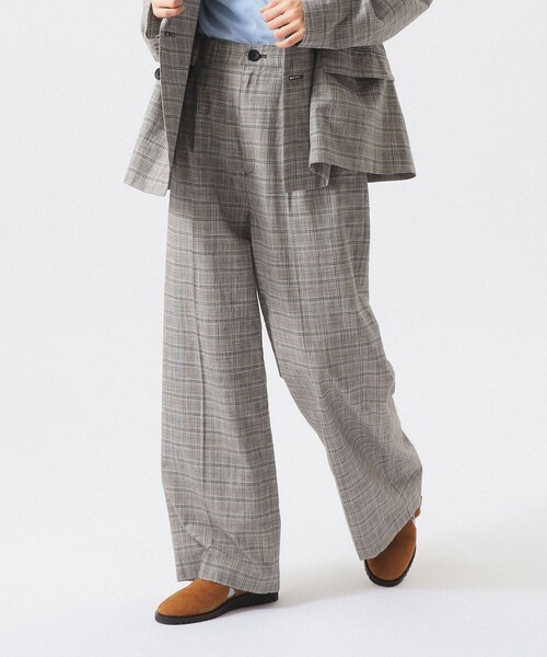 ■デザインチェック柄のスラックスを、ストレートシルエットの王道デザインで作製しました。少しワイドな設計で、バサッとラフに穿いていただける1本です。 タック入りの仕様により、きちんと感のあるトラッドな表情も備えています。■コーディネート同生地のジャケット【品番:13-16-0058-803】と合わせた正統派トラッドスタイルはもちろん、 Tシャツやスニーカーを合わせたカジュアルな着こなしも〈BEAMS BOY(ビームスボーイ)〉らしいスタイルに。 オン・オフ問わず幅広いスタイリングで活躍します。■サイズフルレングス仕様。 程よくゆとりを持たせたワイドストレートシルエットで、体のラインを拾いにくく、リラックス感のある履き心地です。■素材落ち綿を使用し、ナチュラルなムラ感を表現したヴィンテージライクな生地を採用。 約30年前の織機を集めて織り上げており、経糸のテンションが強すぎないため、糸本来の膨らみを感じられる風合いが特徴です。 裏地には薄手のポリエステル素材を使用し、夏場でも重さや暑さを感じにくい設計にしています。表地はドライタッチな着心地に仕上げています。■ケア方法手洗い可(詳細は商品についている品質表示ラベルをご覧ください)Model : H161 B76 W60 H82 Size : 1※アイテムサイズは商品サンプルを採寸しているため、実際の商品と多少の誤差が生じる場合がございます。※画像の商品はサンプルのため、実際の商品と「仕様」「色合い」が異なる場合がございます。※予約販売の商品は、一部店舗で在庫がある場合がございます。