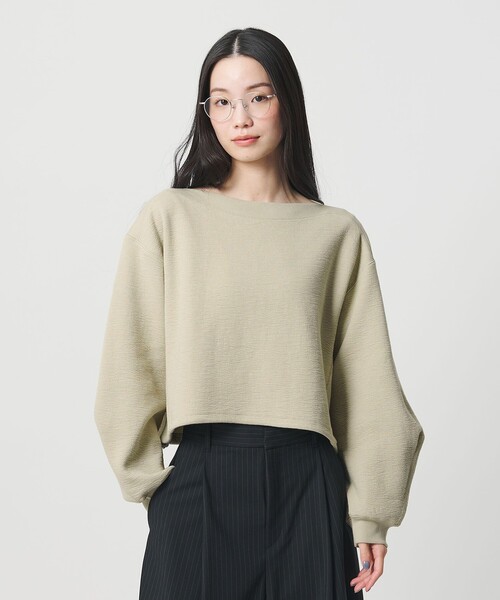 抜け感たっぷりのクロップドボートネックプルオーバー■デザイン首元をすっきりと見せてくれるボートネックのプルオーバー。トレンドムードのコンパクトな着丈に前後差をつけて、ドローコードでの調整も可能な立体感の出るシルエットに仕上げました。洗濯機洗い対応もデイリー使いに嬉しいポイント。スウェットのような中肉のほどよい素材感はインナー次第でロングシーズン着やすく、春先に向けて活躍すること間違いなしです。■素材変形の二重組織を裏使いすることでジャガードのような凹凸感を出した生地。季節の変わり目に適した、スウェット感覚で着られる肉感をチョイスしました。■コーディネートボリュームボトムと相性◎。カーブパンツやチノパンツとのコーディネートがおすすめです。============================裏地:なし透け感:なし伸縮:ややあり光沢感:なしケア方法:洗濯機洗い可============================【注意事項】※商品に「取り扱い上の注意書き」、「洗濯表示」がございます場合は、使用前に必ずご確認ください。※商品画像は、光の当たり具合やパソコンなどの閲覧環境により、実際の色味と異なって見える場合がございます。あらかじめご了承ください。※商品の色味の目安は、商品単体の画像をご参照ください。店舗へお問い合わせの際は、全国のBEAUTY&YOUTH各店舗まで下記の品名/品番をお申し付けください。品名:BY C CRTR/WF BOAT PO 品番:16121000013