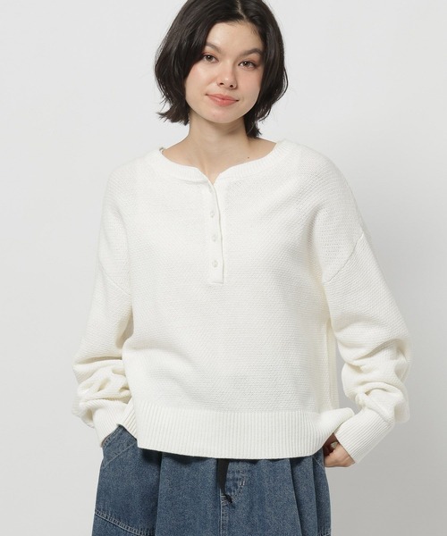 いつものカジュアルコーデを格上げ! コーデが整うベーシックトップス ■素材特性 綿とアクリルの混紡糸を使用。 鹿の子編み特有の凹凸がさらりとした肌触りを生み、通気性も良くシーズンレスで快適に着用いただけます。 ■デザイン 親しみやすいヘンリーネックが魅力のリラックスプルオーバー。 ボタンの開閉によって表情が変わり、1枚での着用はもちろん、インナーを覗かせたレイヤードスタイルも楽しめます! カラーは、清潔感のある「オフホワイト」、都会的で引き締まる「ブラック」、そして爽やかでフレンチカジュアルな印象の「ネイビーボーダー」の3色展開。 鹿の子編みの表情豊かな質感が、シンプルなボトムス合わせでもサマになるデザインです! ■おすすめスタイリング ストリートカジュアルからリラックススタイルまで、幅広い系統にピッタリ! レイヤードしやすい丈感なので、衿元や袖口、裾からインナーを見せるだけで一気にこなれた雰囲気に◎ ※屋外の光や照明の当たり具合で、実物と色味が異なって見える場合がございます。詳細画像の色味をご確認ください。 なお、商品の色や質感を出来るだけ忠実に再現するよう心掛けておりますが、パソコンなどの環境により、実物と若干異なる場合がございます。 ※写真を許可無くコピー・転用することは固くお断りします。 ※取扱いアイテムは店舗により異なる場合がございます。