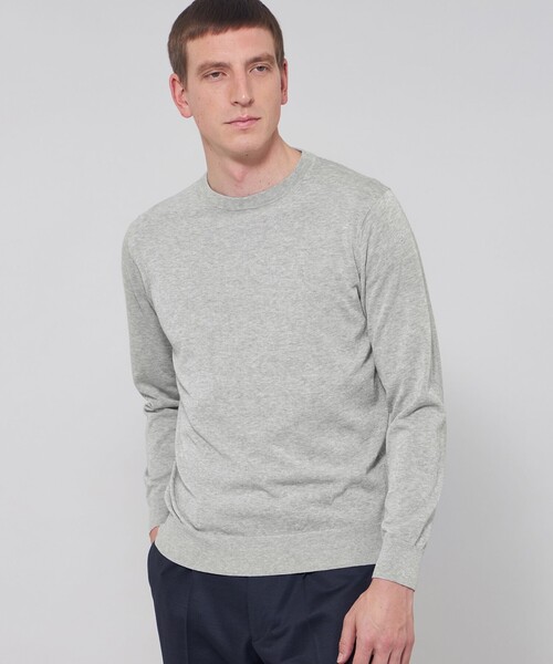 【ウォッシャブル】【着用推奨シーズン:春・夏】<素材>コットンとトリアセテートの混紡糸を使用しています。トリアセテートは植物由来の原料からつくられており、高級感がありながらサラッとした風合いとケアのしやすさが特徴です。春先から初夏まで快適に着用頂ける編地感です。<デザイン>ベーシックなクルーネックのニットはテーラードの考えを取り入れ、立体的な設計に変更しています。身体の形状に合わせてパターン、分量感を細かく調整することでシルエット、着用感が大幅にアップデートされた定番のクルーネックニットです。こちらの商品は一部店舗とオンラインストア限定商品です。WEB限定商品は、予告なく一部店舗で展開される場合もございます。