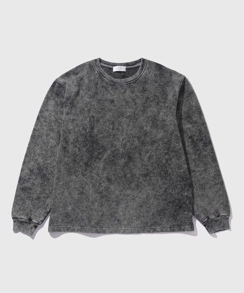 【素材】 素材は通年使いやすい非常にソフトタッチな風合いのバックループの30/10 コットン裏毛です 柔らかいですが程よい肉感があって、インナーとしてはもちろん、春先の1枚着としても使いやすいです ヴィンテージフェード加工(製品染+フロスト)を施しているので、インパクトあって、キレイ目のハズシとしてもカジュアルアイテムにも合わせやすい素材感 【デザイン】 ・たっぷりと分量取ったオーバーサイズシルエットのクルーネックプルオーバー ・スッキリとした着丈と裾のリブで絞っていないので、ロンTEEのようなサラッとした着こなしできて、パンツのシルエットを選ばない汎用性の高い1着 ・プリント物が苦手な大人層にもオススメ、総柄でインパクトありますがアクセントとして取り入れやすい色合いにまとめています