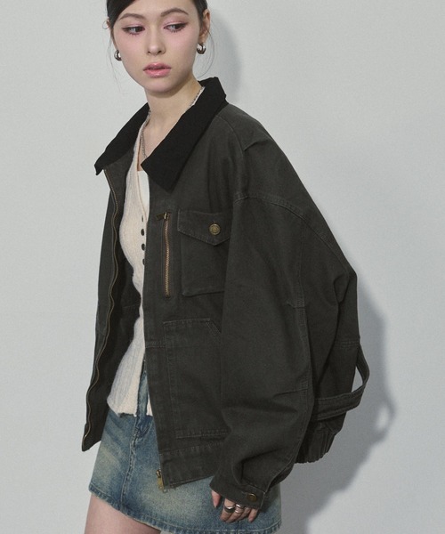 ヴィンテージライクな風合いが目を引く、オーバーサイズジャケット。程よく色落ちした加工感とワークディテールが、羽織るだけでこなれたストリートムードを演出してくれる主役アウターです。 ゆったりとしたシルエットながら、ショート丈バランスで重たく見えず、ミニボトムとも相性◎ラフさと女っぽさを両立できる一枚です。 ■POINT・トレンド感のあるヴィンテージ風加工・オーバーサイズで抜け感たっぷり・衿部分の配色デザインがさりげないアクセント・フロントジップ&ポケット付きで実用性も◎・季節の変わり目にさっと羽織れるライトアウター ■DESIGN / FABRIC程よい厚みのコットン素材を使用し、しっかり感がありながらも着心地は軽め。ハードすぎない加工感なので、ストリートはもちろん、ガーリーなアイテムとのMIXコーデにも使いやすいのがポイント。 ■COORDINATEレースワンピやミニスカートと合わせて甘辛MIXに着るのがおすすめ。デニムやスラックスでメンズライクにまとめても◎インナーをタイトにすると、バランスよく今っぽいスタイリングが完成します。 ■COLORブラウン/カーキの2色展開。ブラウンは柔らかくヴィンテージ感のある印象に、カーキはクールで大人っぽいスタイリングに◎ ‐‐‐‐‐‐‐‐‐‐‐‐‐‐‐‐‐‐‐‐‐‐‐‐‐‐ 透け感:なし 裏地:なし 伸縮性:なし 生地の厚さ:普通 ‐‐‐‐‐‐‐‐‐‐‐‐‐‐‐‐‐‐‐‐‐‐‐‐‐‐ ▼商品のお気に入り登録 完売カラーの再入荷通知や、ラスト1点の通知、セールの通知など商品の情報をいち早く受け取ることが出来ます。 ▼ブランドのお気に入り登録 新商品や再入荷等、いち早くブランドのお得な情報を受け取ることが出来ます。