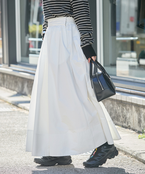 JOURNAL STANDARD ボリューム感がたっぷりの主役級ボリュームギャザースカート。 程よくハリのある素材を贅沢に使用し存在感のあるスカートに仕上がりました。 きれいなシルエットが出るように裾に重さを持たせ、腰回りはすっきりと見せられるようギャザーのボリュームバランスも考えて作った1枚。 フロントベルト部分はタックを寄せトップスをインしても様になるようなアクセントのあるデザインに。 シンプルなトップスとの合わせでメリハリのあるシルエットが楽しめます! 後ろゴム仕様でリラックス感のある楽な穿き心地もポイント。 ********************** 透け感:ホワイトややあり(裏地あり) 裏地:あり 伸縮性:なし 光沢感:なし 生地の厚さ:普通 ********************** 【スタッフ着用コメント】 《スタッフO》 年齢:30代前半/身長:158cm/体型:普通/普段サイズ:M/着用サイズ:フリー サイズ感:私の身長でほぼマキシに近い丈感で穿けます。 素材感:ハリのある素材 着心地:ウエストすっきりですがゴム仕様で楽に穿けます。ボリュームありますが軽やかな素材。 ※あくまでも個人の感想です ********************** ※取り扱いについては、商品についている品質表示でご確認ください。 ※照明の関係により、実際よりも色味が違って見える場合があります。 またパソコン・スマートフォンなどの環境により、若干製品と画像のカラーが異なる場合もございます。 ※商品の色味は、商品アップ画像をご参照ください。 ブラック着用スタッフ:162cm 着用サイズ:FREE ホワイト着用スタッフ:160cm 着用サイズ:FREE 詳細撮影スタッフ:162cm 着用サイズ:FREE 本体:手洗い可能