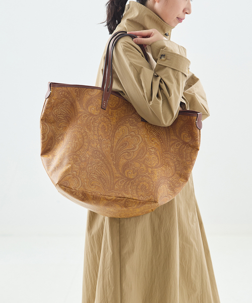 【2026 SS】 JOURNAL STANDARD L'ESSAGE クラシカルなペイズリー柄が印象的なトートバッグは、洗練された大人のスタイルにぴったりです。肩掛けしやすい長めのハンドルと、たっぷり収納できるサイズ感で、デイリーからお出かけまで幅広く活躍。大容量なので旅行にも! シンプルなコーデに合わせるだけで、上品な華やぎを添える一品です。 【A VACATION/ア ヴァケーション】 『ア ヴァケーション』は大手セレクトショップの元アクセサリーバイヤーである吹上肖氏によるバッグブランドで2018年秋冬スタート。 家業がバッグメーカーだった事もあり、幼少期より素材や付属に触れる機会も多く、自然と自身のブランドを始めることになりました。 「ファッションの一部として、洋服とのスタイリングに自由に制約なく合わせられるバッグコレクションを作りたい。」 女性にとって使い勝手が良い機能性やサイズ感を備えながら、少し振り切った個性とディテールを駆使して情緒的にバッグを仕上げています。 熟練の職人を擁する日本のクオリティーは、洋服をデザインするような奔放なアイディアを美しい商品に仕上げています。 ※メーカー型番:26SS-A116-00-10 ※カラーについて 弊社販売カラー名:メーカーカラー名 イエロー(080):MUSTARD PAISLE ※サイズについて 弊社販売サイズ名:メーカーサイズ名 フリー(009):F ※取り扱いについては、商品についている品質表示でご確認ください。