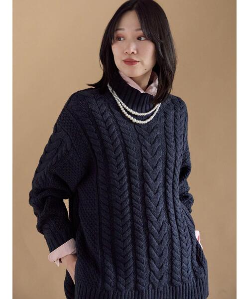 ふっくらとしたケーブル編みのデザインがシーズンムードを高めるニットプルオーバー。首元はハイネックになっており、暖かい着心地を実現します。前後で異なる裾の長さが流れるようなスタイリングを演出。パンツと合わせたきれいめなコーディネートがおすすめです。 ※商品画像は、撮影環境やお客様のご利用のPC・スマートフォンのモニター環境などにより実物と色味に差異がある場合がございます。★《お気に入り登録》でお得な情報をGET★① 商品ページ内のハートマークをクリック!② 以下通知が受け取れます!「再入荷」「ラスト1点」「特別セール」etc..\ブランド、ショップのお気に入りも是非!/