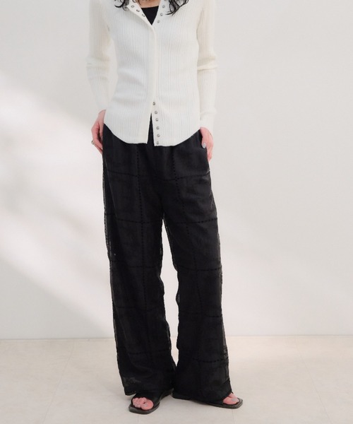 【Shelly island / シェリーアイランド】 ・繊細な刺繍が全体に施された、上品な透け感のシアーパンツ。 ・軽やかな素材感で動くたびに表情が変わり、女性らしいムードを演出します。 ・ウエストは総ゴム仕様でストレスフリーな穿き心地。・同素材のトップスとセットアップで着こなすのもおすすめです。・シンプルなトップスを合わせてもスタイリングが映える主役級アイテム。 《detail》・ウエスト:ゴム仕様・総刺繍デザイン・裏地:WHTはアンダーにお気を付けください・セットアップ着用可能 ◆商品のお気に入り登録【♡登録のお願い】完売カラーの再入荷通知、残り1点の通知、セール等値下げした時の通知も受け取ることができます。 ◆ブランドのお気に入り登録新商品や再入荷など、いち早くブランドのお得な情報を受け取ることができます。是非ご活用ください。 Instagram≫≫≫【@shellyisland__official】TikTok≫≫≫【@shellyisland_official】