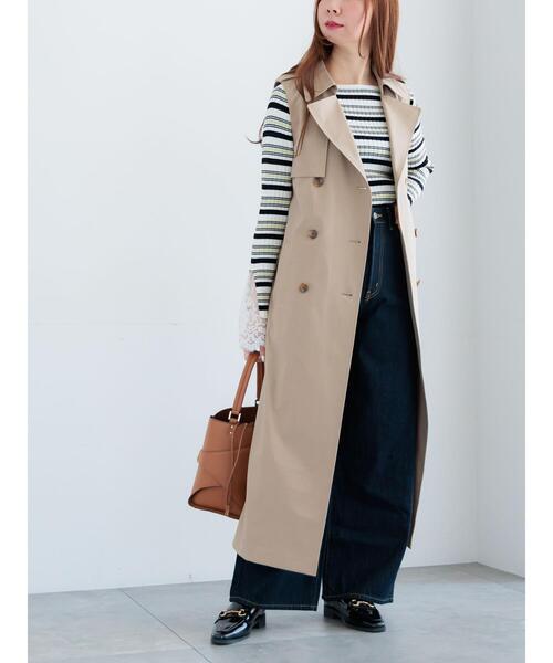 軽やかな着心地で春の装いを上品に格上げしてくれる、ロング丈のトレンチジレ。 身体のラインをすっきり見せる縦長シルエット。襟元はトレンチらしい端正なデザインながら、袖なし仕様で抜け感をプラス。 バックにはベンツスリットを入れ、足さばきも◎ ウエストベルトでシルエットにメリハリをつけられ、羽織るだけでスタイリングが引き締まります。 カットソーやブラウスに重ねて軽やかに着こなしたり、ワンピースの上から合わせてレイヤードを楽しむなど、着こなしの幅が広がる一着です。 きちんと感のある見た目ながら、デイリーからオフィスまで幅広いシーンで活躍します。 ※商品画像は、撮影環境やお客様のご利用のPC・スマートフォンのモニター環境などにより実物と色味に差異がある場合がございます。 【その他採寸】 F 全長:[ベルト](最小)74cm(最大)89c 幅:[ベルト]5cm ★《お気に入り登録》でお得な情報をGET★ ① 商品ページ内のハートマークをクリック! ② 以下通知が受け取れます! 「再入荷」「ラスト1点」「特別セール」etc.. \ブランド、ショップのお気に入りも是非!/