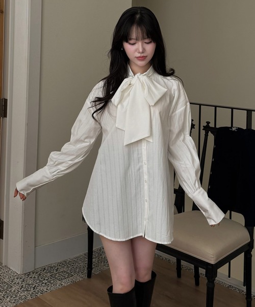 存在感のあるBIGシルエットで、旬のこなれ感を演出するボウタイストライプシャツ。胸元のBIGリボンは結び方をアレンジできるデザインで、スタイルや気分に合わせて表情を変えられます。ボウタイと袖部分は無地で切り替えた配色デザインに。ストライプ柄はカラーによってアソートされており、ひとつひとつ異なる表情が楽しめます。チュニックワンピースのように1枚でさらりと着るのはもちろん、カーディガンやニットとのレイヤードスタイルも今っぽく決まる着回し力抜群の1着です。**********************透け感:オフホワイト・その他ややあり裏地:なし伸縮性:なし光沢感:なし生地の厚さ:普通ファスナー:なし付属品:なし**********************※商品画像はサンプルのため、色味やサイズ等の仕様に変更がある場合がございますので、予めご了承下さい。※取り扱いについては、商品についている品質表示でご確認ください。※こちらの商品は、ROYAL PARTYでの取り扱いになります。直接店舗へお問い合わせの際はROYAL PARTY店舗へお願い致します。※照明の関係により、実際よりも色味が違って見える場合があります。またパソコン・スマートフォンなどの環境により、若干製品と画像のカラーが異なる場合もございます。予めご了承ください。※サイト上のカラー名と、お届け商品に記載されているカラー名が異なる場合がございます。【商品のお気に入り登録】お気に入りアイテムの値下げ・再入荷・在庫1点などの通知を受け取ることができます。⇒カートの右のハートをクリック 【ブランドのお気に入り登録】新商品や再入荷、セール、クーポン配布などお得な情報を受け取ることができます。⇒上部ブランド名をクリック※お気に入りをするとZOZOのお気に入りアイテムページで簡単にcheckできて再検索不要です※