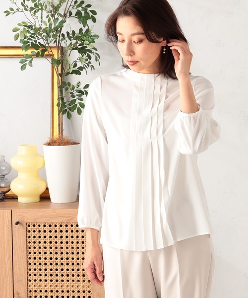 フロントのタック&プリーツで凛とした美しさを表現するブラウス【機能/素材】さらりとしたタッチのきちんとした印象のポリエステル素材を使用。改まったシーンやオフィスコーデにも活躍する素材です。【デザイン】フロントにタックを施し、エレガントながらも凛とした着こなしを楽しめるトップス。程よいゆとりがありながらも肩まわりはジャストサイズで、きちんとした印象の装いを後押しします。【お勧めスタイリング】ジャケットのインにするとオフィスコーデにも活躍。裾は出しっぱなしでもルーズに見えないのもポイントです。【GALLORIA /ギャロ―リア】ベーシックだけじゃ物足りない、ほどよくトレンドを取り入れ シーンレスにきちんと見える。そんな願いを叶えてくれる、いまの空気感をまとった大人のデイリー服「GALLORIA」買いやすいプライスで、バリエーション豊富に揃うライフスタイルに寄り添うコレクションを展開します。◆Instagram:@galloria.sns公式Instagramでは最新情報を定期的に更新中!フォローしてお得な情報をゲット!■商品のお気に入り登録のおすすめ■完売カラーの再入荷通知、ラスト1点、お得なクーポンやお値下をお知らせします。■ブランドのお気に入り登録のおすすめ■新商品や再入荷のお知らせ等、ブランドのお得なクーポンやお値下をお知らせします。