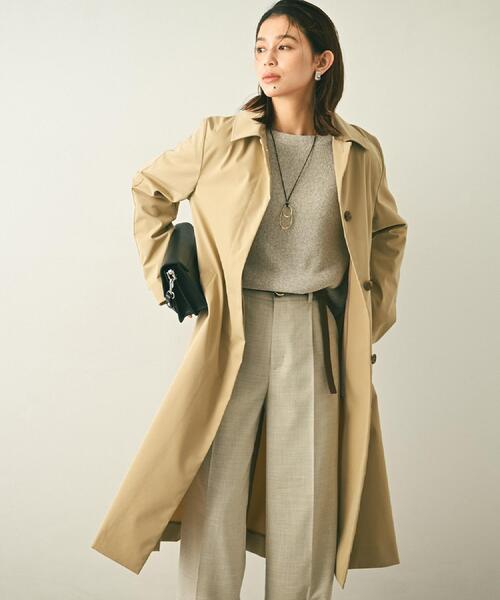 【デザイン】 どんなスタイルにも取り入れやすいステンカラーコート。 比翼仕立てによるミニマルなフロントデザインが、シンプルでありながら洗練された印象の1着。 スプリットラグランスリーブで肩周りの動きを柔軟にサポートしつつ、縫い目を活かした個性的なデザインになっています。 後ろ中心は動きやすさとデザイン性を兼ね備えたボックスタックのデザインになっています。 【素材感】 タスラン糸を使用して綿ライクな天然な風合いをポリエステルで表現した素材になります。 軽量で綺麗め過ぎない表面感とナチュラルなストレッチ性も特徴。 はっ水(水をはじきやすい)機能付き。 【着こなしポイント】 ベイカーパンツ(商品番号:153-65208)と合わせていただくのがおすすめです。 【仕様】 ・ポケット数:横×2 ・裏地なし ※照明の関係により、実際よりも色味が違って見える場合があります。また、パソコン・スマートフォンなどの環境により、若干製品と画像のカラーが異なる場合もございます。 モデル情報:身長163cm B77 W56 H87 着用サイズ:02(M) 店舗へのお問い合わせ商品番号:153-95213 ●製品寸法: 00(XS):着丈104cm B99cm 袖丈56cm 肩幅39cm 01(S):着丈108cm B102cm 袖丈59cm 肩幅39cm 02(M):着丈109cm B106cm 袖丈59cm 肩幅40cm 03(L):着丈111cm B109cm 袖丈60cm 肩幅41cm 04(2LT):着丈112cm B112cm 袖丈61cm 肩幅42cm 42(2L):着丈110cm B116cm 袖丈59cm 肩幅43cm 44(3L):着丈112cm B120cm 袖丈59cm 肩幅44cm 46(4L):着丈113cm B124cm 袖丈60cm 肩幅44cm 48(5L):着丈115cm B128cm 袖丈60cm 肩幅45cm 50(6L):着丈116cm B132cm 袖丈61cm 肩幅45cm 備考:重量:約725g(サンプルサイズ)