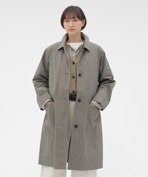 コットンの風合いをいかしつつ、高密度に織り上げた薄手のポプリン素材のコート。織りによる自然な凹凸感が涼しげな表情を生み、シャワープルーフ加工を施すことで、軽さと機能性を備えた仕上がり。大きな襟とAラインのスウィングシルエットが印象的なデザイン。ワークコートらしい腰ポケットや胸ポケットを配し、程よく効かせたパッカリングが軽やかな表情を添えるバランス。ドレスやスカートと合わせやすく、甘さを抑えたスタイリングを演出する一着。※こちらはMHL.SHOP・mix.tokyo限定の商品です。 ※こちらはウィメンズの商品です。▽お気に入り登録<商品のお気に入り登録>完売カラーの再入荷通知や、ラスト1点の通知、セールの通知も受け取ることができます。<ブランドのお気に入り登録>新商品や再入荷など、いち早くブランドの情報を受け取ることができます。