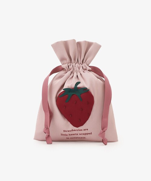 アフタヌーンティーで人気がある、アイコニックないちごがかわいく表現された巾着です。 立体的な装飾をあしらい、魅力溢れるデザインに仕上げました。間口をきゅっと閉じられるため、中身が飛び出しにくいのもうれしいポイント。メイクポーチやアクセサリー入れとして使用できます。バッグにも入れやすいサイズ感で、持ち運びも便利です。 *お洗濯はお避けください。 *サイズや仕上がりが1点ずつ異なります。