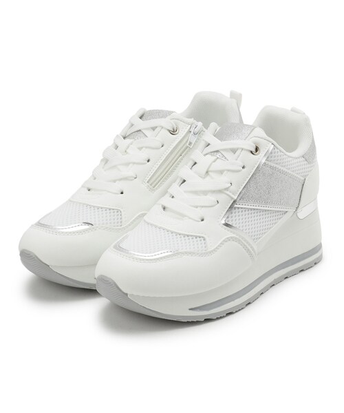 【デザイン】シンプルで洗練されたスポーティー×キレイ目デザイン。インヒールの厚底でさりげなくスタイルアップが叶い、つま先~サイドの切り替えやメタルパーツが上品なアクセントに。ホワイトはシルバーのパーツで華やかに、ブラックはブラックメタルでクールにまとまります。サイドにファスナーが付いていて紐を結んだり外したりせずとも着脱しやすい。見た目のすっきり感も◎。【おすすめポイント】ふかふかクッション:長時間歩いても疲れにくい快適さ。すべりにくいソール:日常の歩行で安心のグリップ力。取り外し可能な中敷き:お手持ちのインソールに交換して自分仕様にカスタム可能。サイドファスナー仕様:靴ひもを結び直さなくてもスムーズに脱ぎ履きできる。インヒールでスタイルアップ:自然に脚長に見せたい方におすすめ。メタルパーツが上品感を演出:カジュアルでもきれいめでも合わせやすいアクセント。サイズ・カラーサイズ:35(23.5cm)、45(24.5cm)カラー:白/黒【こんな方におすすめ】通勤やデイリーに履きやすく、見た目もきれいに見せたい方、インソールで調整したい方、脱ぎ履きが楽なスニーカーを探している方にぴったりです。※照明の関係により、実際よりも色味が違って見える場合があります。また、パソコン・スマートフォンなどの環境により、若干製品と画像のカラーが異なる場合もございます。店舗へのお問い合わせ商品番号:C70-15005●製品寸法:35(23.5cm):ヒール高5.5cm 幅9.2cm プラットフォーム2.5cm45(24.5cm):ヒール高5.5cm 幅9.7cm プラットフォーム2.5cm備考:重量:45(24.5cm)片足約390g