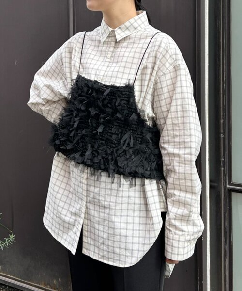 ■アイテム細く薄いラインのチェック柄がシンプルで合わせやすいオーバーシルエットのシャツ。サイドは丸みのあるスリット入り、前後差のある着丈でバランスがとりやすいデザインです。柔らかく張り感も少ないので、1枚でさらりと着るのはもちろん、羽織りとしても活躍しそう。スウェットやニットと重ねてレイヤードスタイルもおすすめ。>>FRIPIERアイテム一覧※こちらは《FRIPIER》のタグがつきます。■素材・洗濯表示素材:綿100%洗濯表示:洗濯機洗い可(弱い処理)※着用時・洗濯時は、必ず取扱い表示・タグをご確認の上、お取り扱い下さい。----------------------------------伸縮性:なし光沢:ややあり厚み:ふつう透け感:なし裏地:なし----------------------------------《お取り扱い上のご注意》・タンブル乾燥不可・強い力がかかると、破れる場合があります。着用時は他のものとの引っ掛けにご注意ください。・直射日光や蛍光灯に長時間当たると、変色したり色褪せたりすることあがります。ご着用及び保管の際にはご注意ください。・濃色物と白色・淡色物はわけて洗濯してください。・長時間水に漬けておいたり、濡れたまま放置せず、洗濯後はすばやく干してください。洗濯の際多少縮むことがあります。・アイロンは当て布をしてかけてください。《予約商品について》・サンプルの為、素材情報、洗濯表示については企画段階の情報を記載しております。公的機関での試験データ結果を受け、量産にあたり混率や洗濯方法の変更が発生する場合がございますので、ご了承くださいませ。・サンプルでの撮影、計測をしております。商品の仕様が一部変更になる場合がございます。・撮影サンプル品はブランドタグがついておりません。製品にはタグがつきますので、製品の表に縫い糸が見える場合がございます。・工場の生産の都合上、納期が変更になる場合がございます。検品や輸送の関係で、発送日が前後しますのでご了承ください。また、入荷状況により、お客様への発送が店頭販売より遅れる場合もございます。・店頭に陳列していた商品も含まれる場合がございます。《商品画像について》ご覧頂いている商品の写真につきましては、できるだけ実物の色に近くなるように努めておりますが お使いの環境(モニター、ブラウザ等)の違いにより、色の見え方が実物と若干異なる場合がございます。 予めご了承ください。《ハートをタップして商品のお気に入り登録》【ハートをタップ】登録カラーの商品の「残りわずか」「再入荷」「値下げ」通知を受け取ることができます。【各ショップアプリにてブランドフォロー】 新商品などの入荷情報、最新のニュースやお得な情報を受け取ることができます。