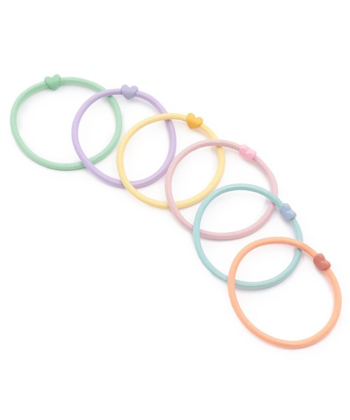優しいペールトーンの6色展開が魅力のヘアゴムセット。 1本ずつにちょこんとついたハート型ビーズがキュートなアクセントになり、コーディネートに華やかさをプラスします。 運動会や遠足など、学校シーンでヘアアレンジに使うのもおすすめです! カラーバリエーションが豊富なので、その日の気分や服装にあわせて選ぶのも楽しい♪ お友だちとシェアしたり、プレゼントにもおすすめのアイテムです。 日常使いから特別なシーンまで、さりげなく「かわいい」を演出してくれます ※モデル着用写真より商品写真が最も実物に近い色味です。 ※掲載画像の商品の色味は、光の照射や角度により実物と色味が異なる場合がございます。 また表示のサイズ感と実物は若干異なる場合もございますので、予めご了承ください。