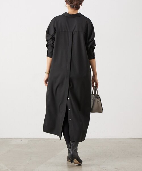■アイテムきちんと感のある衿付きシャツデザインに、さりげない遊び心を加えたワンピース。フロントはスキッパーデザインのかぶり仕様で、すっきりとした印象に。後ろ身頃はヨーク下から比翼仕立てになっており、バックスタイルに奥行きを持たせています。ウエスト部分にはワンタックを入れ、程よい立体感のあるシルエット。袖口はカフス仕様でシャープにまとめ、甘さを抑えた大人のバランス感を演出します。ネイビーは前身頃にホワイトのペンシルストライプ生地、後ろ身頃は無地生地の組み合わせ。ブラックは前後ともに無地の生地でシックに仕上げており、一枚で品よく決まるワンピースです。>>LIVETARTアイテム一覧※被りデザインのため、羽織としての着用はできません。※こちらは《LIVETART》のタグがつきます。■素材・洗濯表示素材:ポリエステル63% レーヨン32% ポリウレタン5%洗濯表示:手洗い可※着用時・洗濯時は、必ず取扱い表示・タグをご確認の上、お取り扱い下さい。----------------------------------伸縮性:なし光沢:なし厚み:ふつう透け感:なし裏地:なしポケット:あり(両サイド)ファスナー:なし(後ろ中心ボタン開閉可能)袖口にボタンあり----------------------------------《LIVETRT/リヴェタート》BEARDSLEYのインブランドLIVETART(リヴェタート)美しい刺繍やレース、しなやかなフォルム、鮮やかな色彩、大胆なプリント。アートに触れるような心地よい緊張感であらたまった場所へも気負いなく身につけられる。日常と非日常をつなぐ、いつもより少し高揚感に包まれる服を展開。《お取り扱い上のご注意》・タンブル乾燥不可《予約商品について》・サンプルの為、素材情報、洗濯表示については企画段階の情報を記載しております。公的機関での試験データ結果を受け、量産にあたり混率や洗濯方法の変更が発生する場合がございますので、ご了承くださいませ。・サンプルでの撮影、計測をしております。商品の仕様が一部変更になる場合がございます。・撮影サンプル品はブランドタグがついておりません。製品にはタグがつきますので、製品の表に縫い糸が見える場合がございます。・工場の生産の都合上、納期が変更になる場合がございます。検品や輸送の関係で、発送日が前後しますのでご了承ください。また、入荷状況により、お客様への発送が店頭販売より遅れる場合もございます。・店頭に陳列していた商品も含まれる場合がございます。《商品画像について》ご覧頂いている商品の写真につきましては、できるだけ実物の色に近くなるように努めておりますが お使いの環境(モニター、ブラウザ等)の違いにより、色の見え方が実物と若干異なる場合がございます。 予めご了承ください。《ハートをタップして商品のお気に入り登録》【ハートをタップ】登録カラーの商品の「残りわずか」「再入荷」「値下げ」通知を受け取ることができます。【各ショップアプリにてブランドフォロー】 新商品などの入荷情報、最新のニュースやお得な情報を受け取ることができます。