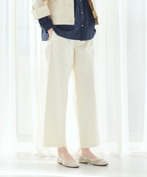 楽してきれい見えを叶えるワンタックパンツワンタック入りで後ろはゴムのイージー仕様なので、楽な着心地ながらきれい見えする一本。長いシーズン楽しめる程よい肉感の素材で、デイリーからお出かけまで幅広く活躍します。コーディネート【ニット】シンプルなクルーネックニットと合わせれば、上品なカジュアルスタイルをお楽しみいただけます。【シャツ】スタンドカラーシャツをタックインすれば、きれいめなオフィスカジュアルコーデに。【スウェット】ゆったりスウェットとスニーカーを合わせて、リラックス感のあるデイリースタイルにもおすすめです。※照明の関係により、屋外で撮影した写真の商品は、実際よりも色味が違って見える場合があります。またパソコン・スマートフォンなどの環境により、若干製品と画像のカラーが異なる場合もございます。予めご了承ください。実際の商品の色味は、スタジオ撮影の画像をご参照下さい。※商品画像はサンプルのため、色味やサイズ等の仕様に変更がある場合がございますので、予めご了承ください。アイテム詳細素材:綿100%サイズ: 【0】ウエスト:68cm,ベルト巾:4.5cm,わたり:33cm,ヒップ:100.5cm,股下:68cm,裾巾:21.7cm【1】ウエスト:71cm,ベルト巾:4.5cm,わたり:34cm,ヒップ:103.5cm,股下:70cm,裾巾:22.5cm====================裏地:なし透け感:なし生地の伸び:なし光沢感:なしケア方法:洗濯可====================生産国:中国品番:12613001※取り扱い・ケア方法については、商品についている品質表示でご確認ください。