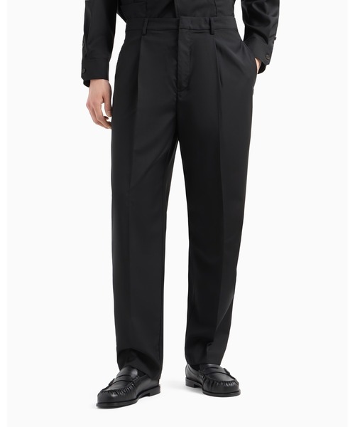 ウエストのタックがクリースラインとなって、レッグラインの中央に長く延びるパンツ。フォーマルウェア用の極めて軽いライトウール生地、ピュアバージンウールのポプリンを使用し、ウェアのシンプルなラインを軽やかに引き立てました。 ライトウール/ベルトループ付きのウエスト/フロントタック/ジップ、フック付きの開き、背面にボタン/サイドポケット/背面にパッチポケット 【EMPORIO ARMANI ブランド紹介】 1981年にイタリア、ミラノで誕生。デザイナーはジョルジオ・アルマーニ。イタリア語でエンポリオとは「あらゆるものが手に入る大きな市場」という意味。着心地と自由な発想を大切にしながら、都会的で洗練されたアイテムを提案しています。 ※こちらはジョルジオ アルマーニ ジャパン株式会社の公式オンラインストアです。アフターサービスにつきましては、当サイト内サポートセンターへご連絡下さい。
