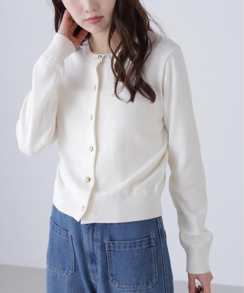 〔fabric&design〕 ベーシックで通年着まわせる肉感とタッチのニットカーディガン。 シンプルシルエットで着回し力抜群です。ほどよいサイズのハートボタンは遊び心あるデザインポイント。 ハイゲージで着心地が良い素材感。 コンパクトで且つ、大きすぎず小さすぎない上品なサイズ感は、上半身をすっきりと見せてくれ、どんなボトムスとの相性も抜群です。 〔stylinig〕 コンパクトな丈感でハイウエストボトムと相性抜群◎ ミニボトム合わせ、ソックス×バレエシューズでバレエコアなムードに仕上げてもかわいいです。 --------------------------------------------------- ◆商品のお気に入り登録◆ お気に入りアイテムの値下げ・再入荷・在庫1点などの通知を受け取ることができます。 ◆ブランドのお気に入り登録◆ 新商品や再入荷、セール、クーポン配布などお得な情報を受け取ることができます。 ---------------------------------------------------