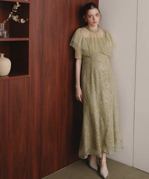 DorryDollで人気のセットタイプドレスです。大振りな柄いきが印象的なスパンコールレースは、目を惹く華やかさ。ボレロには、無地のチュールを使用することでスパンコールレースとのバランスを取り、顔回りをすっきり上品に魅せてくれます。ボレロ裾部分のパイピングもさりげないアクセントとなり、全体の雰囲気を引き締めます。袖部分は2種類のチュールを段差を付けて重ねる事で立体感を生み、気になる二の腕や肩回りを華奢に見せてくれる効果も期待できます。スカートはDorryDollらしいマーメイドシルエットに仕上げ、女性らしさを演出。ベーシックでクセのないデザインの中にも、細部へのこだわりが感じられる一点です。備考】トップス・裏地なし・伸縮性なし・後ろ中心ホックあきワンピース・裏地あり・伸縮性なし・バックファスナー仕様・肩紐アジャスター付き◼オススメシーン◼結婚式・2次会(二次会)・1.5次会・披露宴・お呼ばれ・成人式・同窓会・謝恩会・パーティー・演奏会・食事会まで、多様なシーンのコーディネートにご使用いただけます。◼商品のお気に入り登録 ◼完売カラーの再入荷通知や、ラスト1点の通知、セールの通知も受け取ることができます。気になるアイテムは《お気に入り登録》が絶対オススメ!◼ブランド紹介◼Dress Shop " Dorry Doll"(ドリードール) 結婚式やパーティーなどのフォーマルシーンはもちろん、発表会、謝恩会、入学式や卒業式などのセレモニーシーン、そして女子会や食事会などのカジュアルシーンなど、多様なシーンにご使用いただけるドレススタイルをご提案させていただいております。 また、トータルコーディネートがきるよう、羽織や、パーティーバッグ、パーティーシューズ、アクセサリーなども豊富に揃えております。
