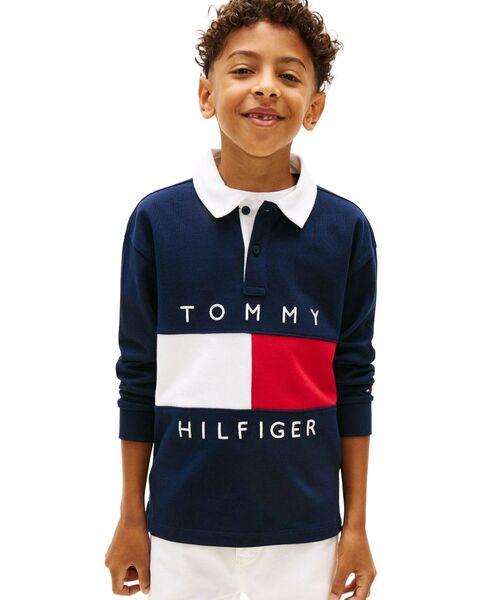 BOYS ヘリテージフラッグジャージーロングスリーブポロシャツ フラッグロゴを大胆にあしらったカラーブロックデザインのロングスリーブポロシャツ。胸元には「TOMMY HILFIGER」のロゴ刺しゅうを配し、襟から前立てにかけては白で切り替えて顔周りに明るさをプラスしました。伸縮性のあるコットンジャージー素材で、動きやすく快適な着心地です。 【サイズ】 90:着丈41cm 身幅34cm 肩幅34cm 袖丈28cm 100:着丈45cm 身幅36cm 肩幅37cm 袖丈31cm 110:着丈47cm 身幅38cm 肩幅38cm 袖丈32cm 120:着丈50cm 身幅39cm 肩幅39cm 袖丈38cm 130:着丈53cm 身幅40cm 肩幅40cm 袖丈41cm 140:着丈57cm 身幅43cm 肩幅43cm 袖丈45cm 150:着丈61cm 身幅46cm 肩幅45cm 袖丈50cm 160:着丈64cm 身幅49cm 肩幅50cm 袖丈54cm 【TOMMY HILFIGER】 永遠のアメリカンクラシックをベースにモダンなひねりを加えたデザインが人気のトミーヒルフィガー。都会的で洗練されたメンズ・ウィメンズに加え、チルドレン、ゴルフライン、そしてよりカジュアルなデニムラインと豊富なカテゴリーが揃うグローバルブランド。