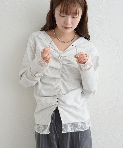 レイヤード風デザインで1枚でこなれ感たっぷりなカットソー ※フロント部分のボタンは飾り仕様で、開閉できません。一番下のみ開閉可能です。 ●デザイン レースとカットソーを重ねたようなデザイン×配色で、1枚で旬なスタイリングが叶うトップス。 襟と袖口、裾から見える繊細なレースが女性らしい印象に。 柔らかく、伸縮性のある生地感で着心地抜群。フロントボタンのデザインでスッキリとした印象に仕上がります。 ●スタイリング 1枚で決まるトップスなので、シンプルなボトムスと合わせるだけでトレンドライクなスタイリングに。 デニムやスラックス、スカートなど、カジュアルにも綺麗めにも合わせられるアイテムです◎ ジャケットなどのインナーとしても活躍します。 ●おすすめスタイリングアイテム ・【人気のため追加決定】スタッズデニム ・【楽ちんなのに美脚効果◎】裾ドロストスウェットパンツ ・クラッシュカーブパンツ ・【新色NAVYが登場/ストライプ柄、無地 / ウエストの配色がポイント】Wベルトパンツ ●素材/取り扱い方法 洗濯:40度限度 手洗い/石油系ドライクリーニング可 アイロン:低温120℃まで(あて布使用) タンブル乾燥:不可 裏地:なし 伸縮性:あり 光沢感:なし 生地の厚さ:普通 ------------------------------------------------------ ▼商品のお気に入り登録 お気に入りアイテムのセール通知や完売カラーの再入荷通知、在庫残り1点などの通知を受け取ることができます。 ▼ブランドのお気に入り登録 新商品や再入荷、セール、クーポン配布などお得な情報をいち早く受け取ることができます。 ▼メルマガ登録 mysticのお得な情報やニュースを一足先にお届けします。 ------------------------------------------------------ 商品について ※ご注文いただいた予約商品のお届け時期の確認は、注文履歴ページより行えます。 ※サイト上のカラー名と、お届け商品に記載されているカラー名が異なる場合がございます。 ※商品の色味は、撮影場所や光のあたり具合などにより色味が違って見える場合が御座います 。 また、お客様のお使いのPCのモニター環境などにより色味が違って見える場合が御座います。予めご了承の上ご注文下さい。